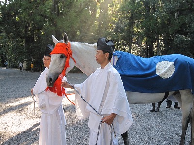 伊勢神宮の外宮は、正式には「豊受大神宮」といい、古くは豊受宮、度会宮とも称され、祭神は天照大神の御饌都神です。豊かな食物の神であることから衣食住、ひいては産業全般の守護神として広く崇められています。正宮でのお参りは、日々の生活や無事を感謝するようにして、お願い事や勇気をもらうことは、荒祭神でお参りするときに行うのがいいとされています。 |