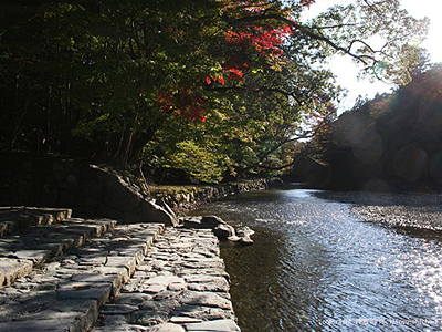 二見興玉神社は、729年〜749年頃に創建されたと言われる、猿田彦大神と宇迦御魂大神を祀る神社です。人々は「夫婦岩」と呼ばれる二つの岩を鳥居に見立てて、「興玉神石(おきたましんせき)」と呼ばれる猿田彦大神ゆかりの霊石を拝し、さらに夫婦岩の間からのぼる朝日を天照大神として拝んできました。境内のあちこちで蛙の像を見かけるのは、蛙が猿田彦大神の道案内をしたとされ、古来より交通安全、善導の守護神として広く信仰されています。 |