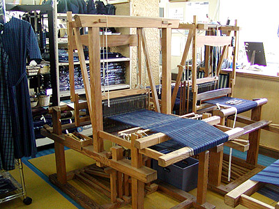 松阪市の伝統産業の松阪もめん。藍で染めた糸(先染め)で織られた布は洗うほどに色が冴え、縞模様の柄は島渡りとして粋を好む江戸の庶民に人気を博しました。 松阪もめん手織りセンターでは、反物はじめ、紳士シャツ、ネクタイ、エプロン、袋物などお土産に最適な小物類を販売や、松阪もめんの機織り体験まで出来ます。 |