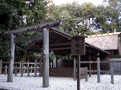 倭姫宮は、大正時代に外宮と内宮の間の倉田山に創祀され、すぐ前に神宮徴古館・農業館・美術館・神宮文庫・皇学館大学等の学校があるところで、伊勢神宮に関係する施設が集約されている場所といえます。古代からの由緒ある神宮にあって新しい神社ですが、それほどまでに神宮関係者や市民から敬意を持たれていた神様なのでしょう。 |