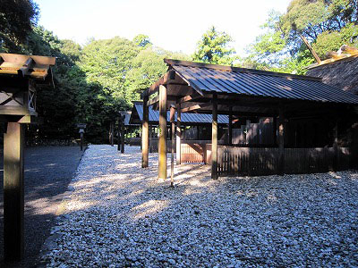 月読尊は、外宮の別宮に祀られている月夜見尊と同神で、天照大御神の御弟神になります。さらに、こちらの月讀宮では、その月讀尊の荒御魂、御父神のイザナギノミコトとイザナミノミコトも祀られています。天照大御神のご家族の神様ということになりますね。月読宮は、天照大神を祀る内宮のような太陽パワーではなく、疲れたり、傷ついたものを回復させる夜の力です。 |