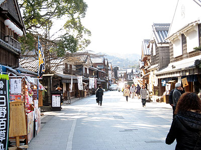 伊勢神宮、内宮の宇治橋から約800m続く鳥居前町をおはらい町と呼んでいます。伊勢地方独特の切り妻入りの建物が立ち並び、みやげものや食事処の店が軒を連ねて大勢の人でにぎわっています。おはらい町の建物のほとんどがが古い日本の様相をしていますので、歴史を感じながらの散策がオススメです |